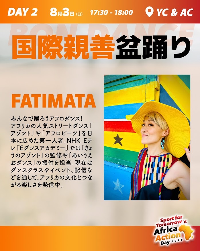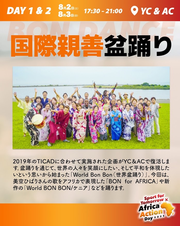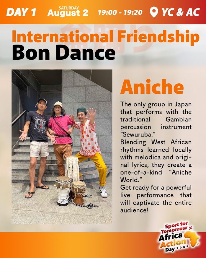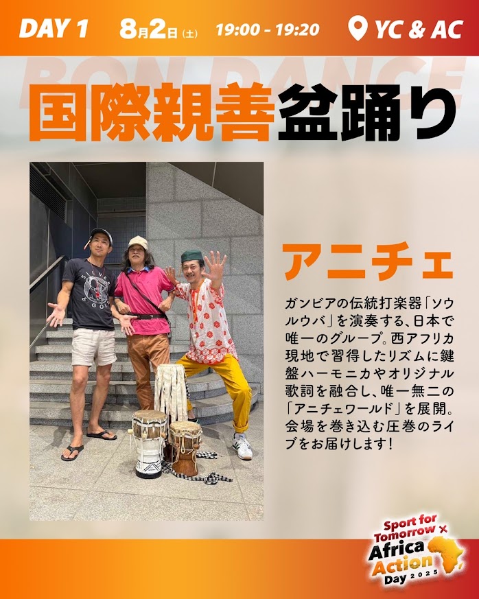 今年はアフリカンダンス・アフリカ伝統音楽のショーも盆踊りの合間に楽しめます。