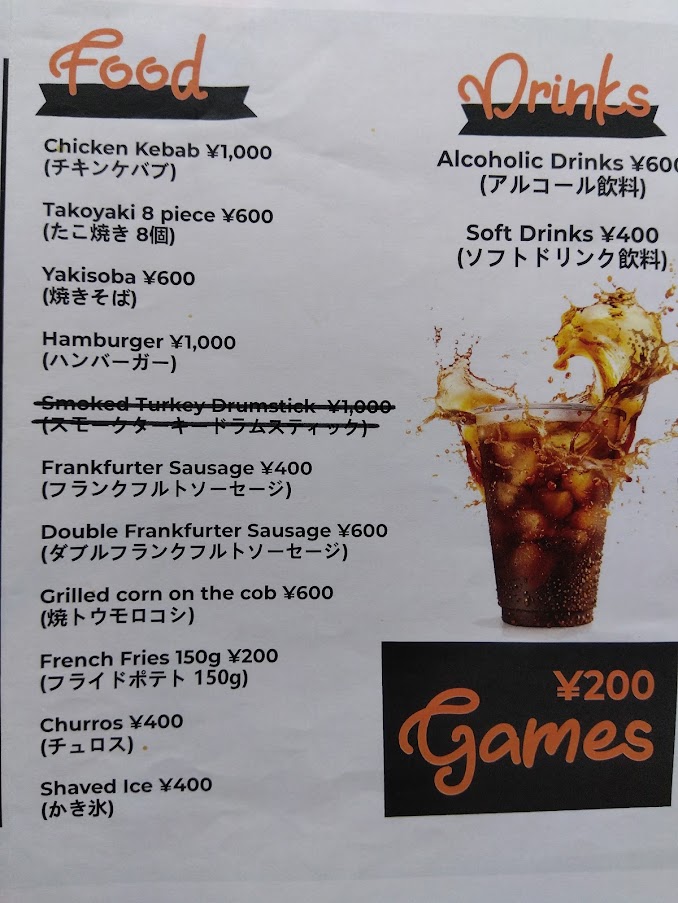 YCAC名物のケバブ、バーガーも!ドリンクの充実。