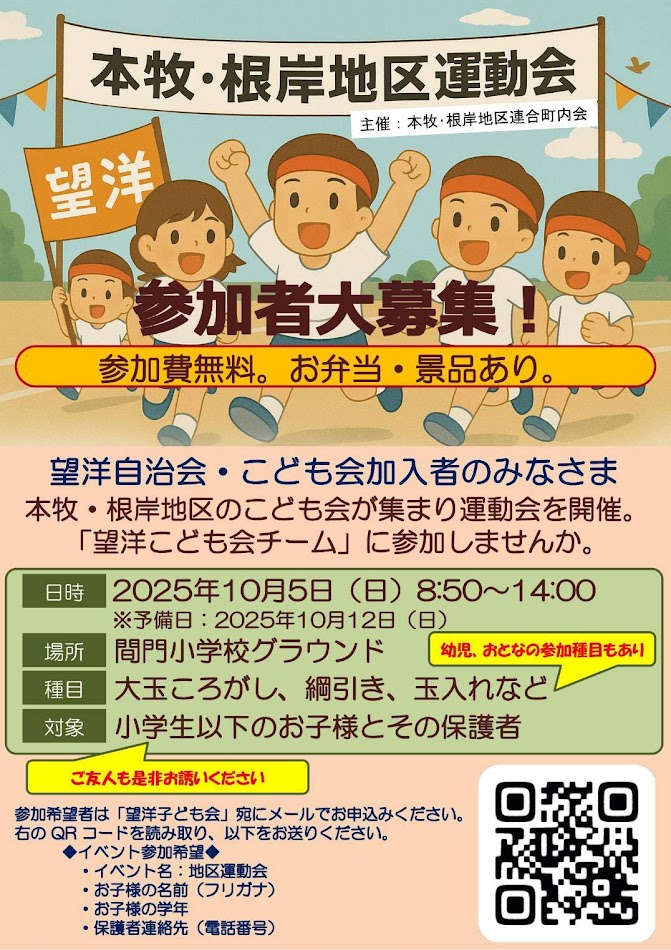 望洋自治会は「望洋子ども会」のチーム名で参加します。自治会員・望洋子ども会およびそのお友達も参加できます。詳細・お申込みは下記をご覧ください。
